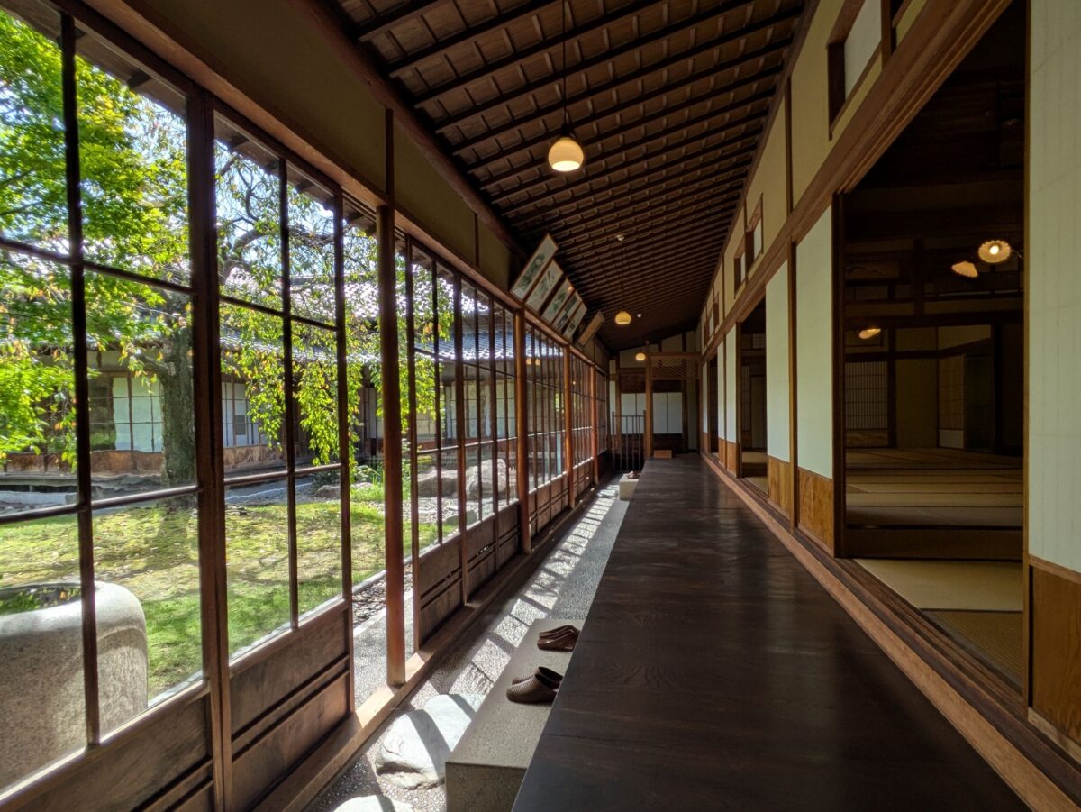 見どころは多いのですが、この縁側の受け丸太や長押、巾木は約18mの1本ものとのこと。
